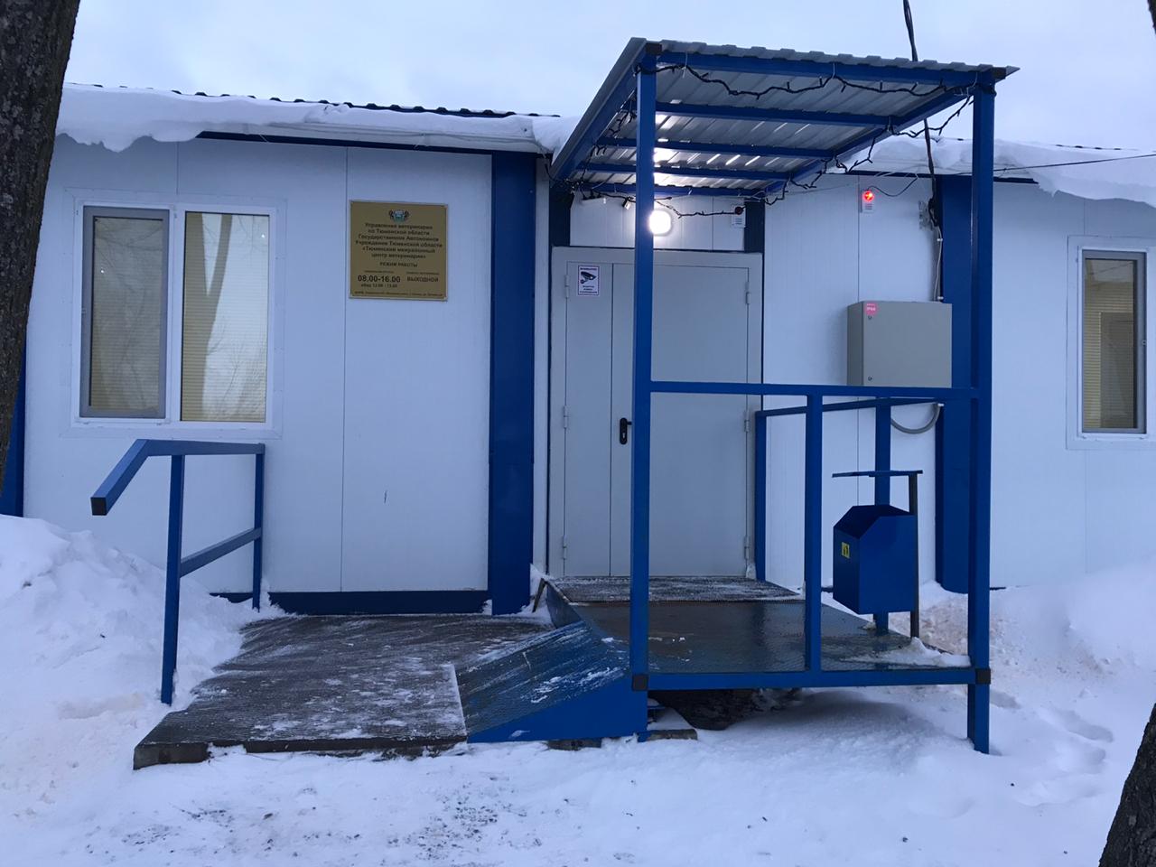Входная группа с выдвижным трапом и перилами, имеет безопасное съемное ограждение и освещение. Для обеспечения транспортировки мобильного здания входная группа собирается в металлический закрываемый ящик, установленный под вагон-домом.