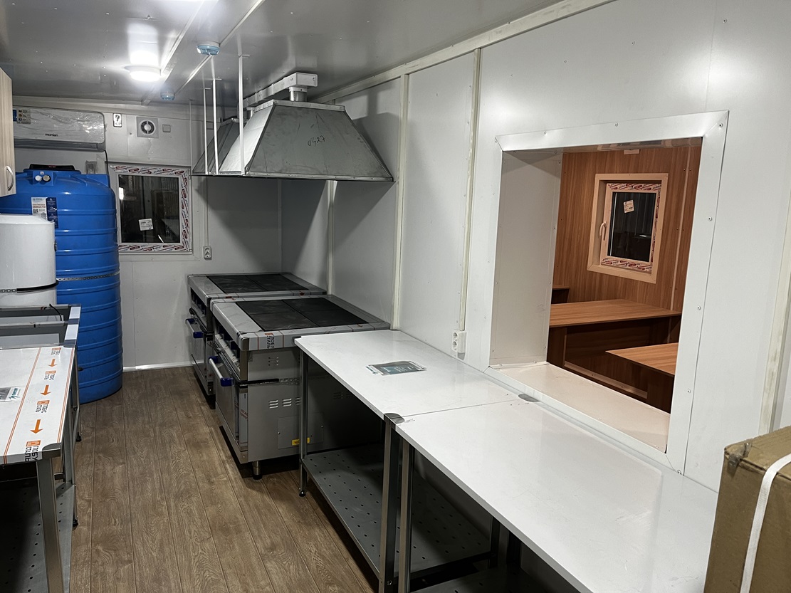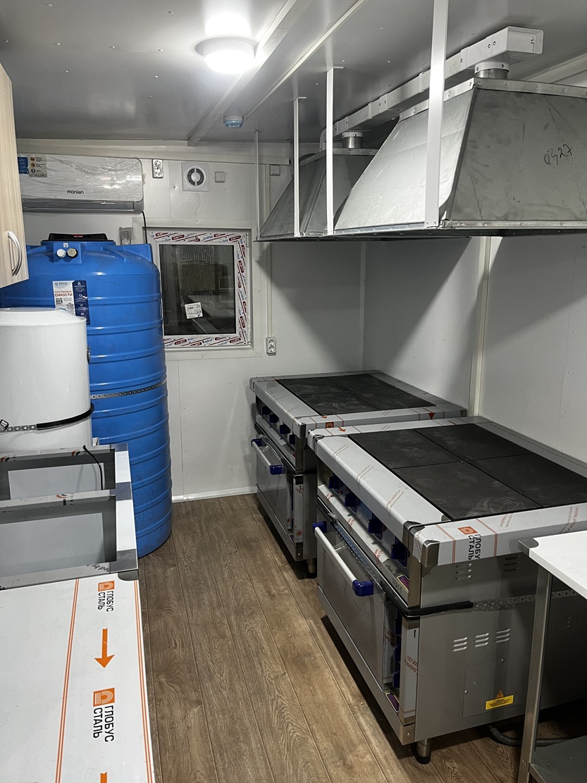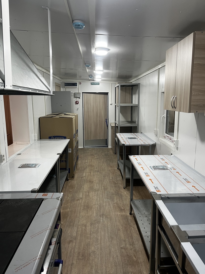 Вагон-дома могут быть не только жилого назначения, но и специализированного. Вагон-дом-столовая обеспечит Ваших работников неотрывным вкусным и горячим питанием.