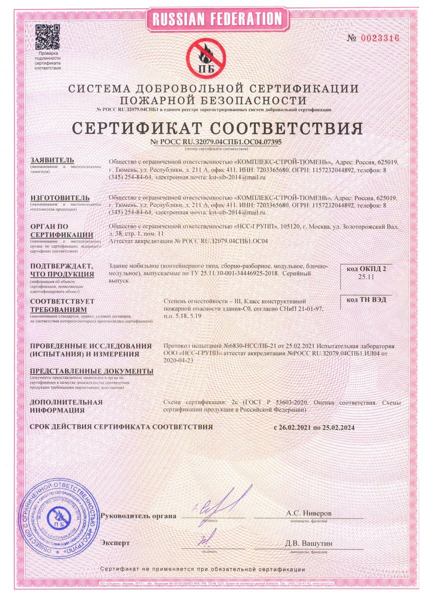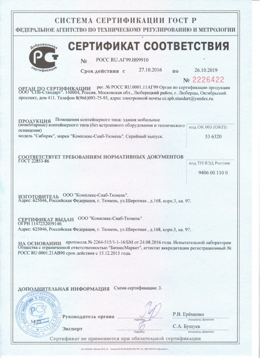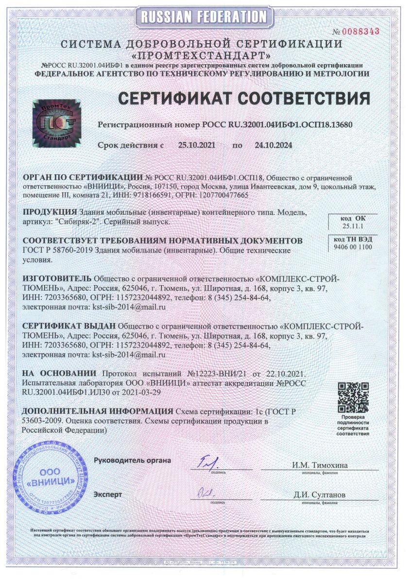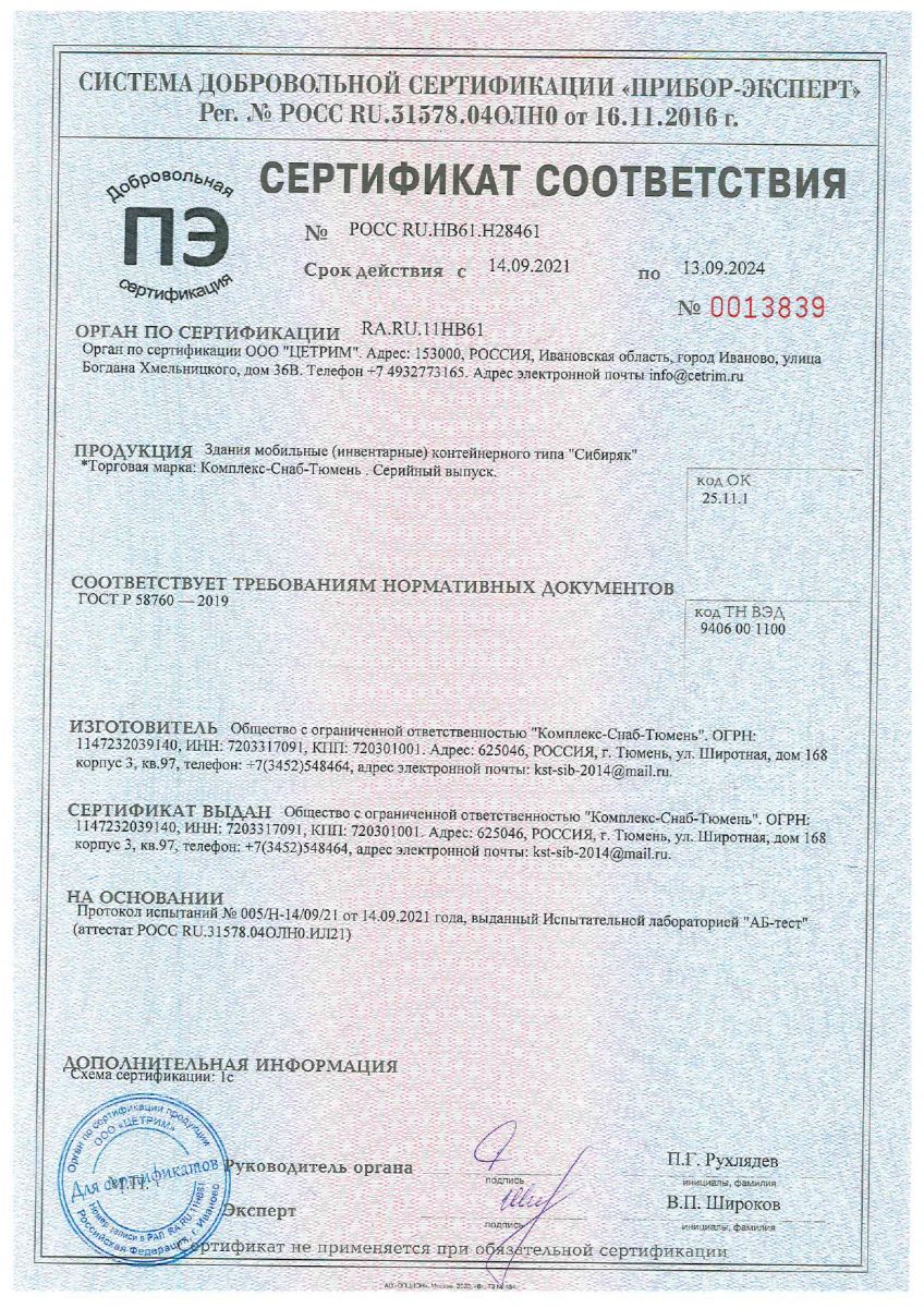 Все мобильные здания изготовлены согласно ГОСТ Р 58760-2019 и «Здания мобильные, (инвентарные). Общие технические условия».